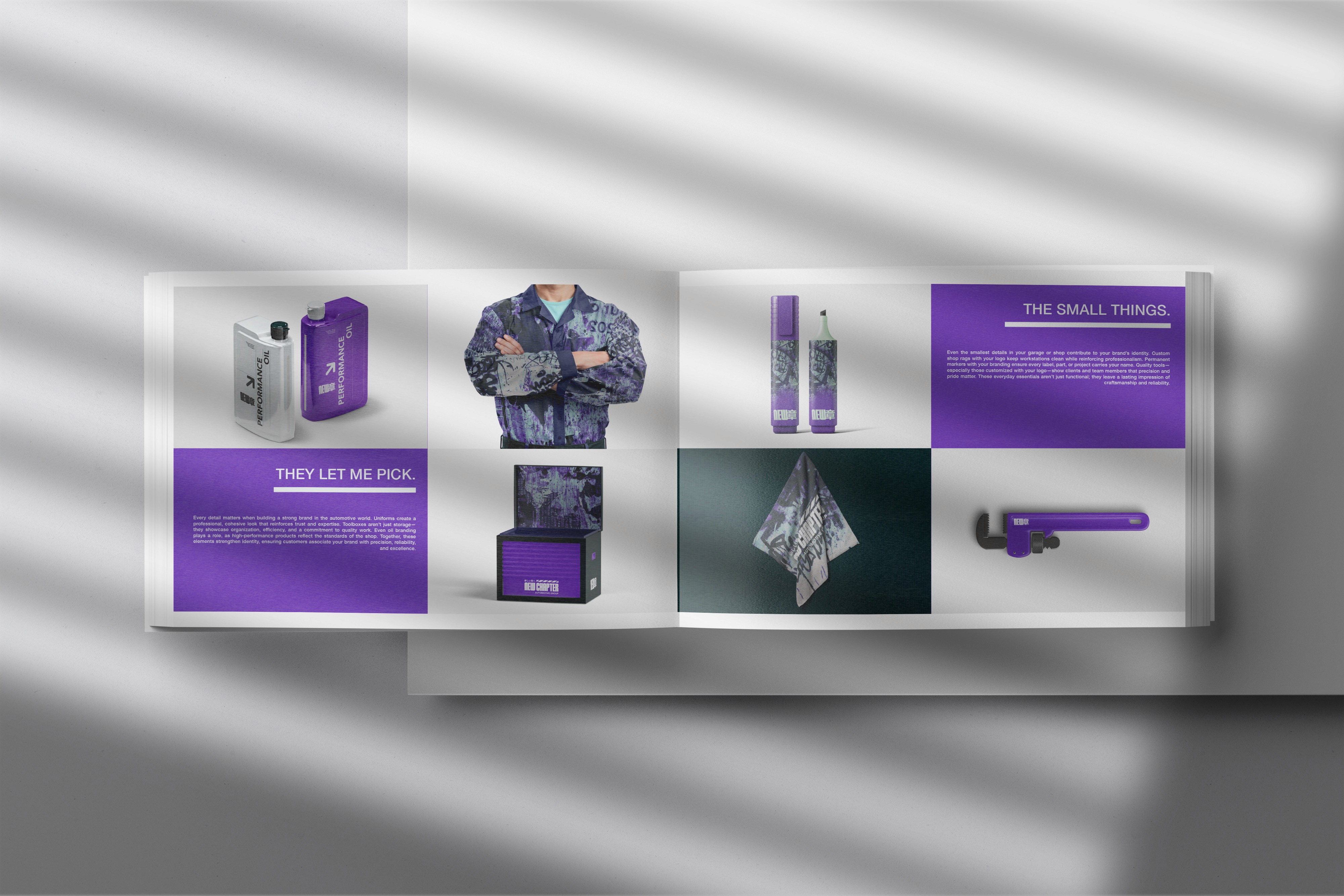 For this project I decided to get personal and develop a brand and guidelines for a friend's small car shop, while trying to incorporate the design aspect of standing out among the competition. This was reflected in the design of the logo to the brand assets with me trying to ask how I could make this stand out?